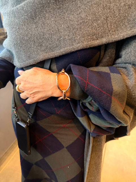 This bracelet is a faithful reinterpretation of a sterling silver piece from Robin’s jewelry box. We carefully studied and matched every measurement from the original solid silver bracelet, then recreated it in an 18K rose gold semi-hollow version. The result preserves the character and proportions of the original while offering a lighter feel and a refined, elevated finish.